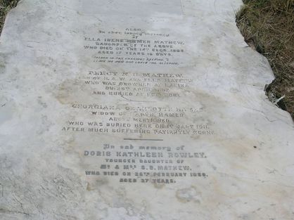 Also in the loving memory of Ella Irene Hamer Mathew Daughter of the Above who Died on the 14th Dec. 1906? aged 17 years 16 days